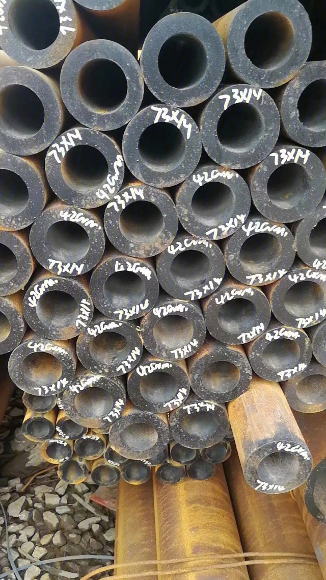 小口径厚壁无缝钢管主要通过热轧或冷拔工艺生产:热轧法将钢坯加热后穿孔轧制,适合大批量生产;冷拔法则在常温下通过模具拉拔,尺寸更、表面质量更高。后续处理包括热处理(如正火、淬火)以改善性能,以及矫直、探伤和防腐涂层等工序。